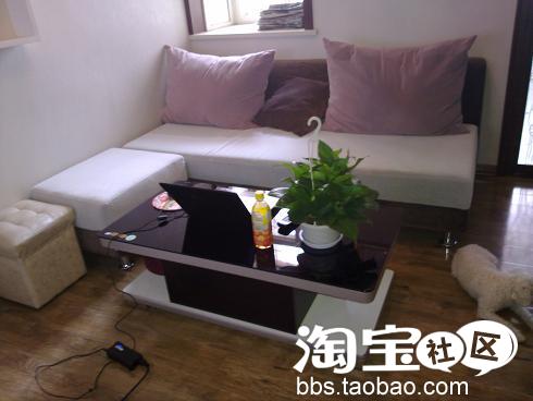 )!沙发和大房子的床都是喜孚侬的,超喜欢贵妃塌,可惜房子太小了,能放沙发的地方尺寸长2米,最后没办法买了3人位沙发,加了一个塌,2200搞定,沙发质量感觉比较好~颜色也很喜欢,不过婆婆说养狗太容易脏,它始终是被布盖着的。。伤心。。茶几尺寸也不能选大的,我们转了2天,最后在三森选中了这款,搞价以后600拿下了,找朋友帮忙搬的,呵呵,省了100块运费。当时一起买了2个方墩,一个75,还有4个凳子,好像忘记照了,样子很有味道坐的部分应该是棕色的塑料编织的感觉像藤子,登腿是金色的又点弧度的,本来要80一个,去了2次终于搞到60一个,买了4个因为是麻将专用