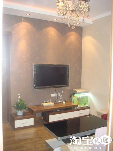 改天补上照片,电视柜和鞋柜是汉德兄弟的,房子里的2个衣柜还有5斗柜和床头柜也是这个牌子,一共花了9800,颜色我比较喜欢,板子厚感觉质量比较好。电视是40寸三星的也是5.1促销时候买的4800!该说说壁纸了,是装修公司带我去选的,这个价钱比网上贵,而且他的工费比外面其他店都贵!!背景的壁纸是台湾的牌子,一卷是7个平方260,其他墙用的是国产白色条纹壁纸,一卷5.3个平方35,颜色太浅了,而且花纹不明显,好多人都没发现时壁纸。客厅中间的那个置物架是装修的师傅设计的,样子简单也很好看,还没想好摆什么,随便放了点东西。