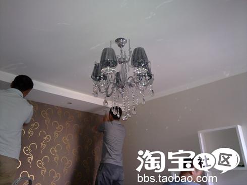 小得意一下,装修中的过程请大家忽略掉吧,时间拖得太久,而且只是一个感觉乱到崩溃,因为是熟人所以当初好多问题没有说清楚,我们经常要自己打扫。。首先上客厅,我家的灯都是网上淘的,基本都很满意,安装是爸爸工地的工人来做的,客厅这个水晶灯(http://trade.taobao.com/trade/detail/trade_snap.htm?tradeID=35230666377794&itemID=24bc3df7b4cf5b121a531a43cf17f981&xID=0db1)2个师傅装了1个多小时,真是辛苦了,