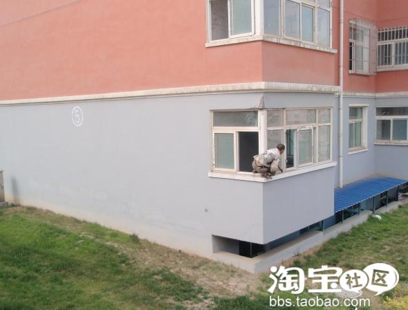 改水电暖的同时,我们找来了安装防盗网的工人给我们量尺寸做网网了,因为我们是一楼,必须要装哦,装网网我也参考了小区别家的经验,铝合金的吧,漂亮,但是不耐用,钢筋的吧,不太好看,但是绝对结实,而且最重要的是价格便宜哦,质量最差的铝合金一平米也要75呢,而国标12的钢筋棍才60一平米耶,呵呵,所以我嘛,当然选择钢筋棍了,上张工人量尺寸的PP