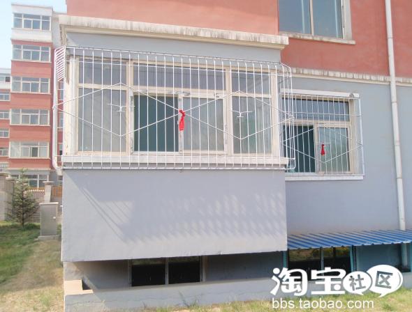看这银灰色的油漆还算好看吧,呵呵,我是很喜欢这种颜色哦!远处看和铝合金的一样哦,最重要的是价格实惠而且比铝合金的结实耐用哦,装防盗网的工人们都说我这用10年也用不坏,铝合金就不保证了,呵呵!我们这地方装修新房子有个风俗就是在自家窗户和门上都绑上红绳子,以图吉利,呵呵,你看我也绑上了耶!呵呵这下我们家的一楼就不用每天去关窗户了,可以打开着尽情的跑味了!