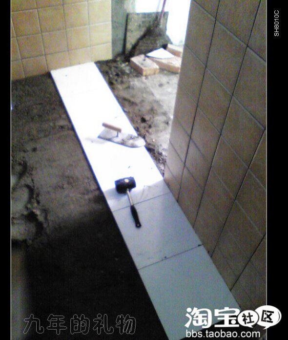 用铁锤砸起贴好的瓷砖却相当有力,看的我都心疼~~建筑工人真伟大!