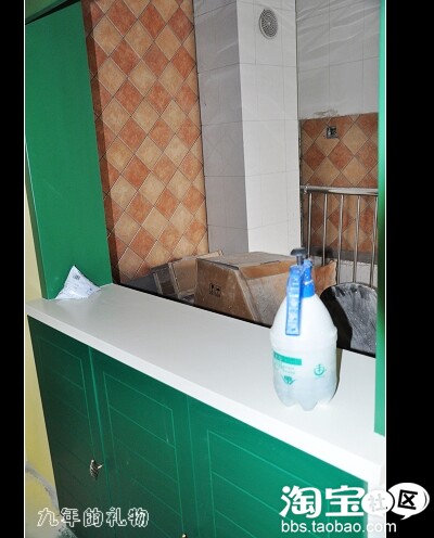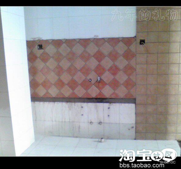 上下白色的砖最后用橱柜挡住了 看到那砖了吗 把上边缘弄的坑坑洼洼 能挡住的下边缘却弄的很整齐 而且 还给我留下了上面的两个水管口 哎 人家下面有吗~ 下面有水管的啊~~~~~~~