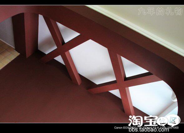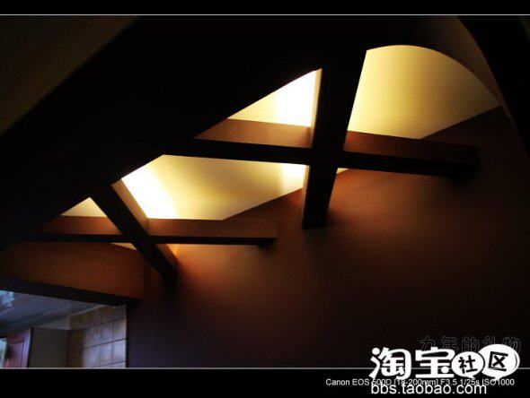 餐厅做了个x型的小吊顶,本来设计的是钉在墙顶上的,但木工师傅做成了悬空的,不过这个小小的理解错误,出来的效果确实非常立体,非常的好~
