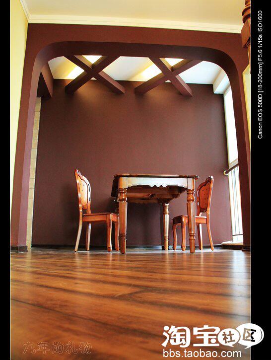 东边是餐厅区,家具都是实木的 赶上打折买的 还比较实惠~ 屋子里有股楸木的香味。。。