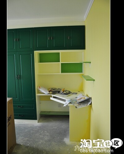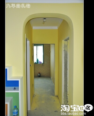 两个隔板是用废料做的,其实装修中因为要考虑到预算。很多物品或者材料都不能做到尽善尽美,比如书房的墙面就是用剩下的黄漆喷涂的,最后不够了只喷了一遍,也属无奈,不过话说 “不完美也是一种可爱吧,毕竟古人都有“人有悲欢离合,月有阴晴圆缺吗。”