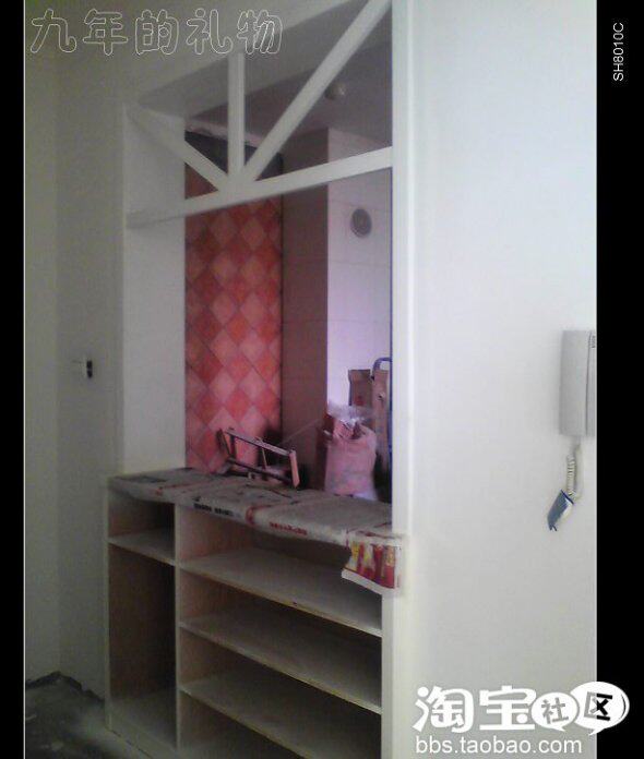 鞋柜是细木工板做的 里面贴的是波音片~ 呵呵 其实我有拍的比较好的鞋柜照片,但是呢 因为那些照片地板啥的都铺好了 我得留着最后贴 嘻嘻 按照装修进程慢慢贴哈