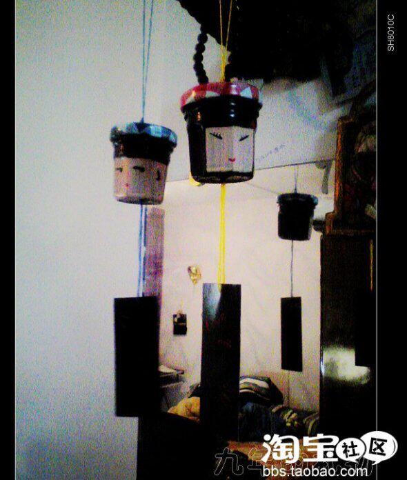 这是我用废旧的果酱瓶子做的日本风铃,不过他俩不会发出声音,只能默默相视。。。