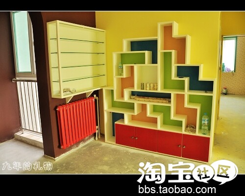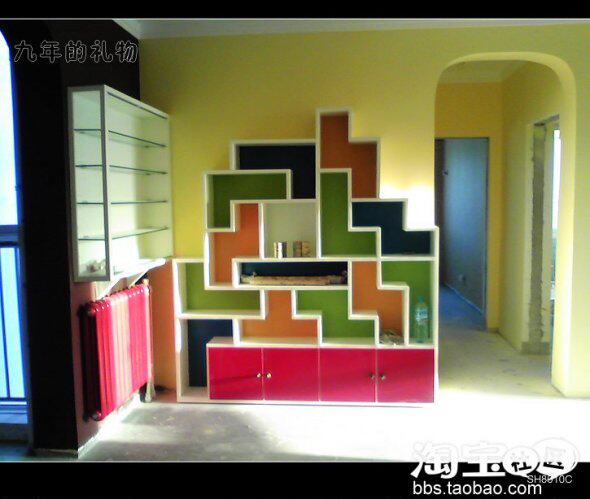 一个是放在餐厅的多宝格。那位在网上看到有俄罗斯方块的柜子,非常的惹眼也非常的漂亮!