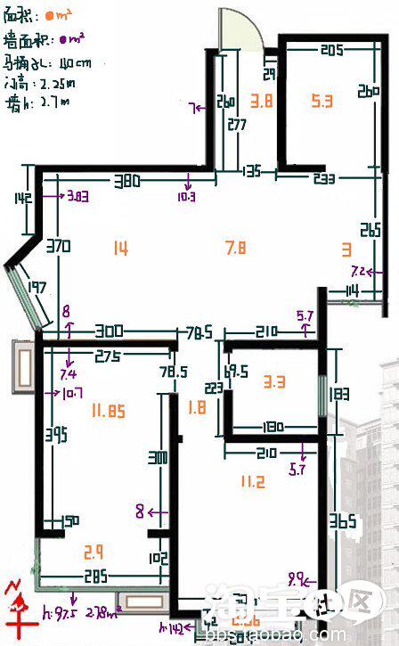 装修的第一步是进行户型改造。我们把和餐厅链接的小阳台打通,连接成一个区域;把厨房门堵上,做成鞋柜和隔断,把厨房和小阳台连接的窗子砸掉,打通作为新的厨房门。后两张户型图纸就是改造以后的。这是原本的餐厅和小阳台处