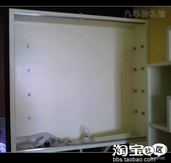 展示柜。原本是定了玻璃隔断和玻璃门的,NND,弄玻璃那小子整了3,4次尺寸都不对,我们索性退了,过几天摆小车的时候再说吧。后来让朋友在展示柜上画了幅俄罗斯城堡,就是俄罗斯方块游戏开头的那个图画,正好配合俄罗斯方块多宝格~~