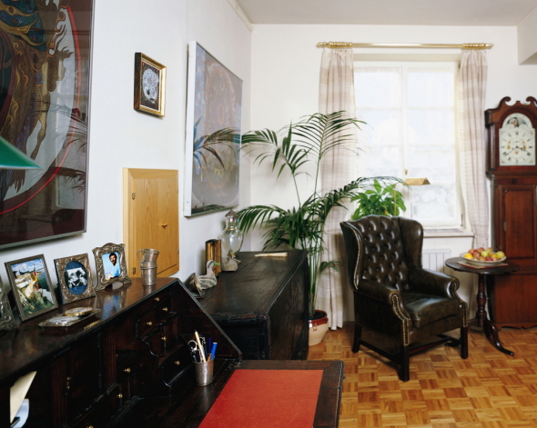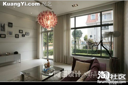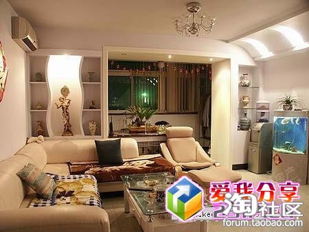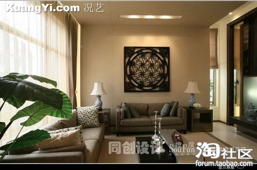 墙上的图框画很到位,特别是画与画之间的间距很重要,茶几不知道是什么材料做的,好象是全石膏板吊顶的