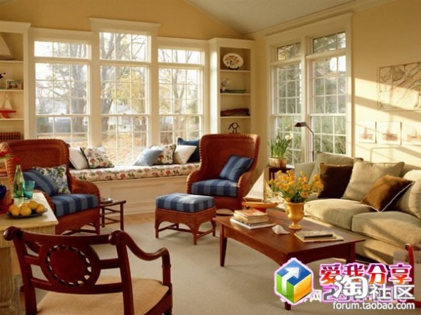 地板颜色质感很棒,藤椅沙发没的说----一个字好。白色的吊柜很有特色,白色吊柜是可以借鉴的