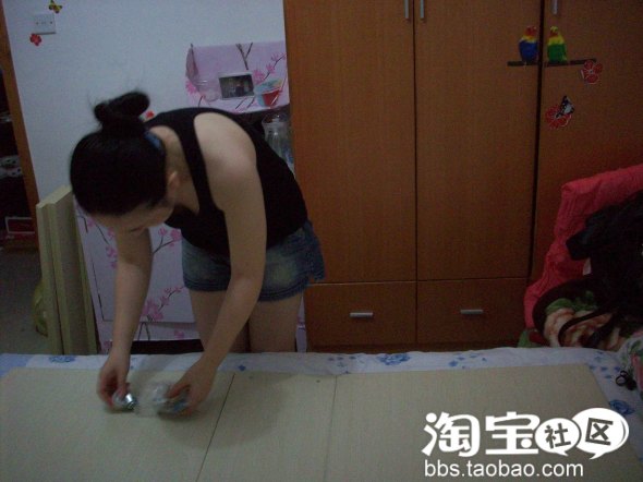 接下来是贴衣柜,这个就是今天让人感到郁闷的地方,为什么郁闷呢,大家往下看吧