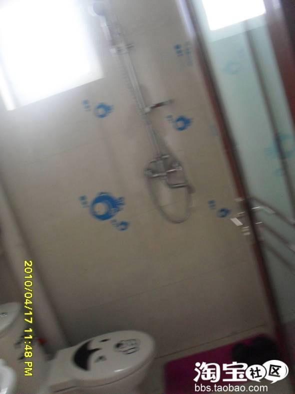 卫生间买一套胖胖鱼,卫生间当时买砖是觉得花砖有点贵了,贴上点东西点缀一下,把它放在花洒周边,浴柜这边还有两条没有拍上,坐边上边也是“任务完成”
