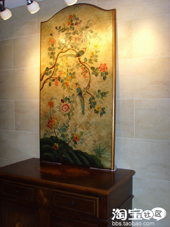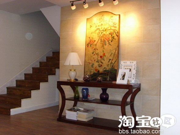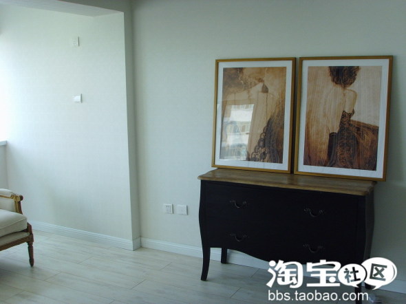 壁纸介绍完了,看了照片的朋友相信对我家装修风格已有大致了解了吧。一楼偏法式;二楼因为层高低的关系,选择了主打黑白配色的新古典风格(现在看来,效果挺好,不显得层高低了,风格也很明显);三楼就是美式乡村了。以上出镜的四副装饰画均来自,天鹅星梦,画的装饰效果突出,但由于是印刷品,质感就仁者见仁了,个人觉得更适合现代装修风格。(不好意思,由于网购的节能灯泡迟迟未到,拍照均靠自然光线,有点暗,效果不太理想,理解下吧)