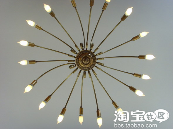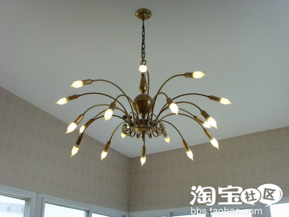 淘宝上买的灯泡终于到了,还只到了一半,把厅里的装上了,秀一下我家的灯吧,超爱的全铜焊锡灯,在实体店里看了相同的灯,不同品牌,一个吊灯就要6千,一个吸顶灯都在2千左右,很爱很爱,一看就别无他求了,只能是它,回来在网上找了一个星期,误打误撞找到了生产这种灯的一个厂家,很实惠的价格,我买了3个吊灯,两个吸顶,两个壁灯,两个镜前灯一共才6千多,效果很好,和实体店看到的没什么区别,特别推荐下:http://store.taobao.com/shop/view_shop-90716af6d47b4308f8308383d10508b9.htm誉灯饰,掌柜的:shirley071111服务很细心负责,喜欢欧式灯具的朋友一定要看下这种全铜焊锡灯,看了就会爱上,真的是古典大牌的气质!