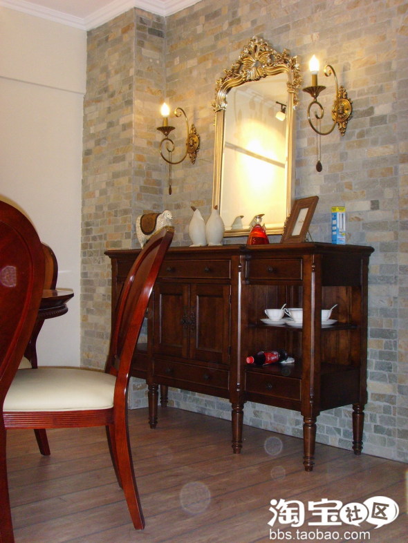 餐厅和玄关之间的隔墙,壁灯下的餐边柜和壁灯中间的镜子还没到。(今天太忙了,就更一张,不好意思)
