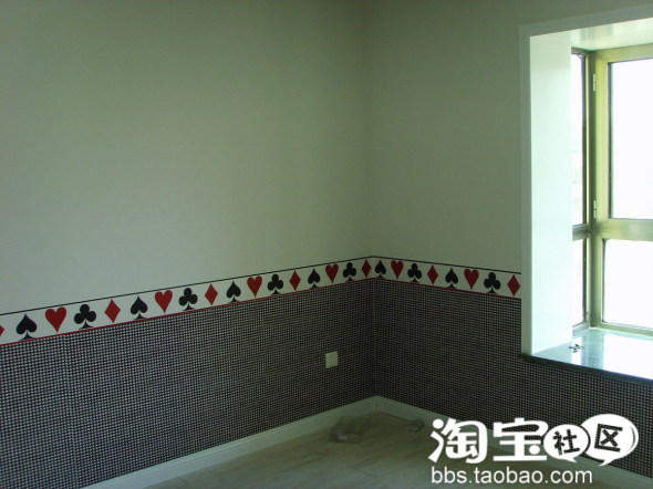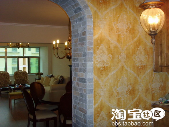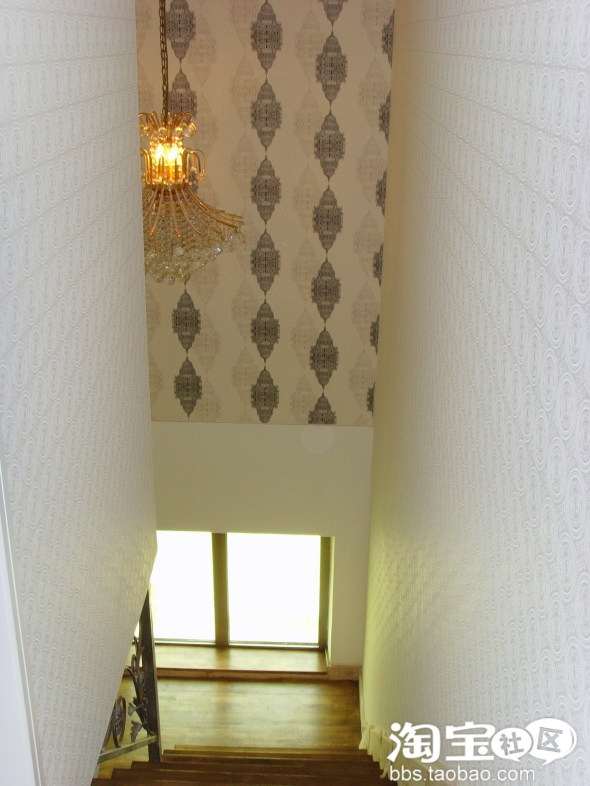 接下来是很出效果的一单---壁纸,网上买壁纸真的很划算,但需要你的耐心与众里寻她的好眼力,壁纸应该是我耗时最长的一次网购,也是最难下决心的,前前后后挑了近一个月,最终买了韩国纸(大面积)和加拿大劳威尔(主题墙、背景墙),网上韩国纸的卖家很多,我买的这家“馨雅壁纸”,服务好,价格也比较优惠,最重要的她家纸特别全,个别没有的也能帮你调货,让我一站购齐,很省心(前面也问过两家,总是货不全,也不负责调货),在这里表扬下服务很好的掌柜:开心池。其它的劳威尔壁纸是在“凯撒壁纸”家买的,这个牌子的纸价格比布鲁斯特的要实惠,花色也很耐看,喜欢欧美风格的可以试试,我选的夜之魅力系列,效果很棒。秀图: