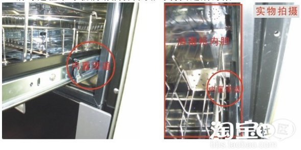 建议大家购消毒柜的时候看看润轴是否装到消毒柜外面,如果轮轴装在消毒柜里面,轮轴是肯定会有润滑液的,而消毒柜在消毒的时候加热温度都一般都超过100度会有一部分的润滑液在高温下挥发,这样就润滑液因挥发从而污染碗筷,这样反而把碗筷污染了。而把润滑轴装在消毒柜消毒的外面,就不会引起因为加温而引起的润滑轴在高温下挥发污染碗筷的情况
