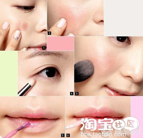 5 少女时代的妆容又一重点是唇色,粉色唇彩只需涂抹在嘴唇中央。