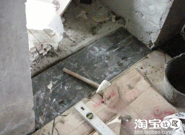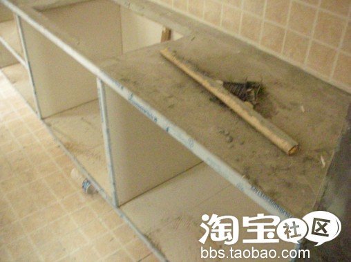 还有就是前面提到的蹲便器,最先我还以为是工人师傅安得就是斜的,结果后来才弄清楚了,结果蹲便器还是敲过一次重新来的哈,重新做了防水,还好,现在防水都做得不错,楼下的开始装修,我问过还好不漏水,因为这事还和项目经理闹得有些不愉快,箭牌啊,箭牌,装修真的是心力交瘁啊~这里基本上泥工的事情基本都做完了,该挂腻子了哦,那几天一直下雨,我第一遍腻子刮完之后,几乎是10天之后再是第二遍;说说门,就是本地的一个加工厂出来的,很便宜,3扇一共1700,不含五金配件,五金是网上