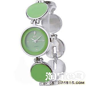 搭配亮点:连连看表。应该知道i game游戏上正在风靡的连连看游戏吧,就是它啦。三个绿色靠在一起,就组成了最美丽的得分点。戴在手腕上,便成了最环保的亮点,射手MM不会错过这样的漂亮手表哦!
