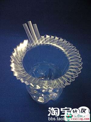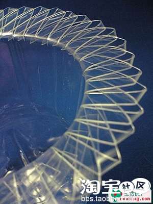 要使做出的花瓶美观,塑料瓶剪出的穗条要宽度一致,而且每个穗条距瓶底的距离也应一致。