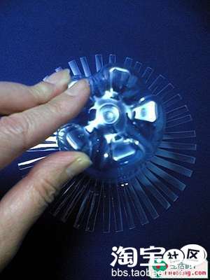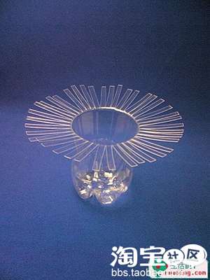 Step.8先把瓶身向下扣,使剪出的穗子展开