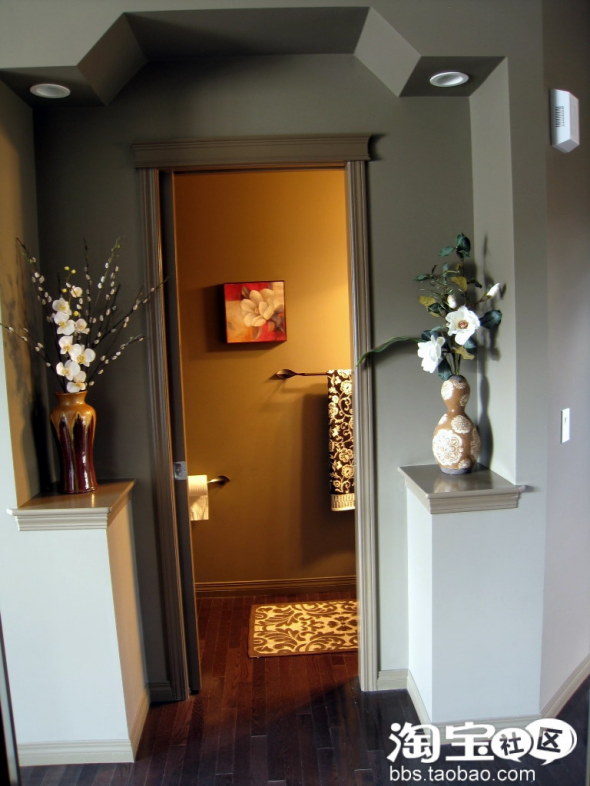 楼下的洗手间,我发现各种花饰和壁挂在装修过程中真的很有必要,也有很好的效果。
