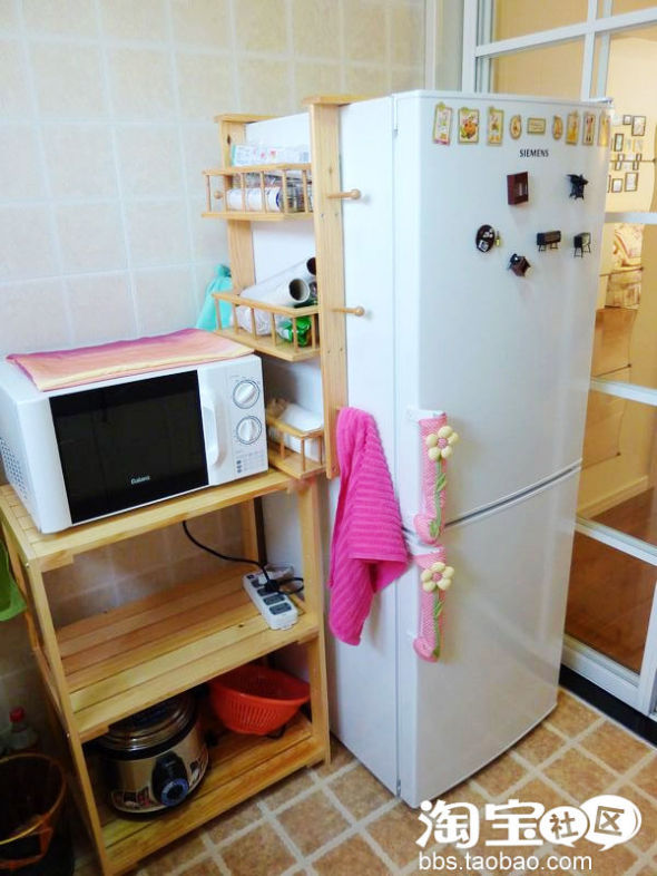 关于冰箱架和冰箱贴,由于冰箱购置于2年前,所有这些附属品也购置于两年前,地址已无法查找,不过相信搜一下并不难找。其它也有不少东西够自于宜家。