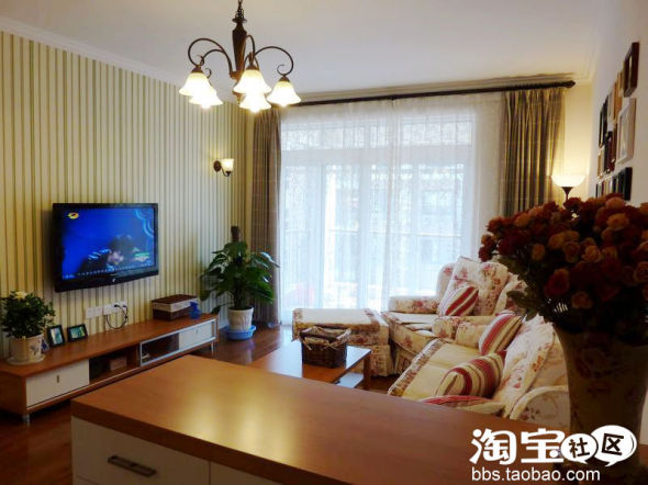 这~~~是一个典型的画面,在画面里,除了地板,家具,电视,花草非网购以外,其它统统来自淘宝!而且都统统物超所值