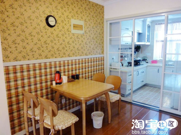 其实我家的田园自我感觉很省钱,原因就是我没有刻意追求所有的东西都是田园的,只是要了几个田园的经典元素:田字格移门,墙纸,门洞垭口,小物件,软装。。。而这些都并不是太贵的东西,如果去掉这些,你会发现vivi家竟然是现代家居,呵呵。