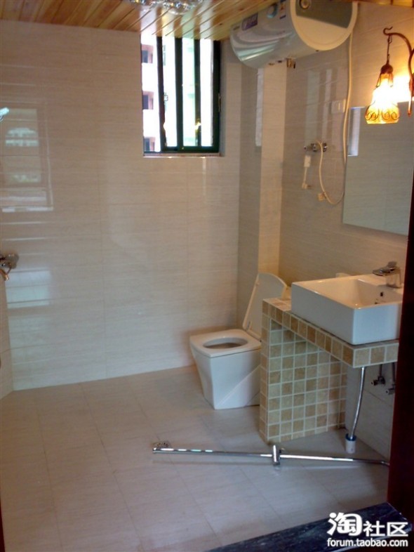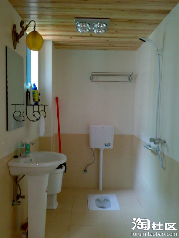 主卫(镜前灯、花洒、置物架、卷纸盒、水龙头、伸缩镜、箭牌面盆统统在淘宝买的)