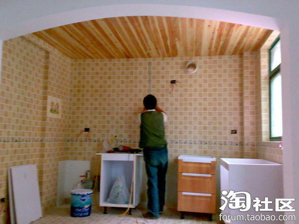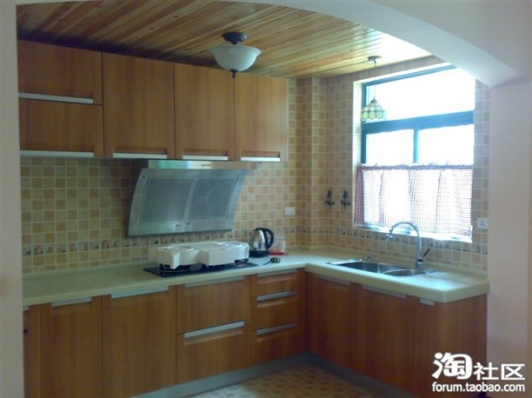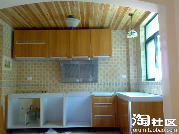 厨房,搬家之前拍的,灯具、水龙头、杉木吊顶淘宝买的。