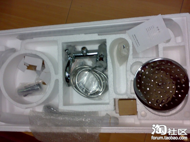 今天收到了和群友们一起团购的花洒,因为家里还没有开始装修,所以付款之后一直没有发货。卖家似乎很着急,催了我很多次了,没办法,那就发过来吧。拆包裹的时候我还有点忐忑不安,因为有群友说一般。打开之后匆忙看了一下,我觉得还不错哦~比我想象的好多了。来了几个参观的同事,其中2个是刚装修完的,我让他们猜多少钱,他们都说起码上千了。呵呵,我说410,他们都不相信,有一个还说干脆把这个转让给他算了。总之,我还是满意的,上次在尚高买马桶的时候,看到尚高的花洒蓬头也是这样的铜皮的,至少都是800多。不过我还是想建议卖家把说明改一下,是铜皮而不是全铜,这样准确一些。
