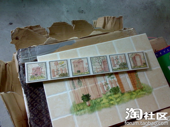 中午瓷砖进场了,这是厨房墙砖,送了一片花片转。
