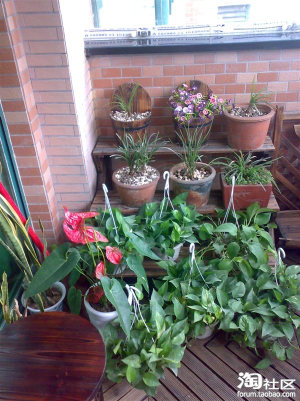 花花草草们刚浇过水。兰花的花盆有点破,但是我家的兰花可是好品种,是我公公种,每年都开花,很香~~中间那个是假花哦,我妈上次来顺手放进去的,呵呵,我一直放在那里没动,颜色多一点挺好看