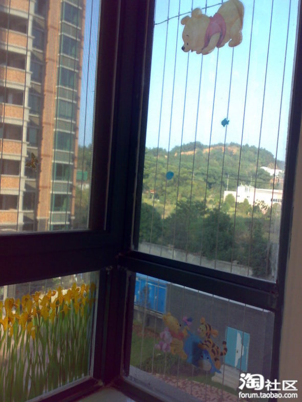 阳台,儿童房窗户贴剩下来的蝴蝶也派上了用场