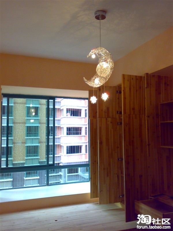 客厅的百得诗特吊灯,在篱笆网上第一次看到这个牌子的灯就喜欢上了,其实我开始并不是选的这款客厅灯,是要买一款灯头朝上的,结果卖家给我发错了,发了现在这款便宜的,我当时只注意看零件是否完整了,根据没有想到就这样(发过来的都是零件)。等我家电工装的时候我才发现不对。找卖家他拒不承认,那时候钱已经转给他啦,后来我去淘宝投诉,卖家居然说是我自己买了另外一款故意说他发错了。还好淘宝主持正义,从他的保证金里面扣给我了差价,虽然只有几十块钱,但是意义很大,不能让奸商得意。