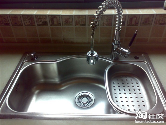 龙头:早就对这种抽拉式的龙头长草了,还没有正式开始装修我就买了这个龙头,呵呵,其实本身水槽自带的龙头还重些呢:)