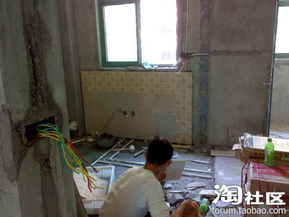 中午抽空去了一趟工地,砸墙作业已完成,按照我的设计在砌墙。突然很佩服自己,坚持衣帽间的设想,改出来的效果不错哦。客卫的空间也不小,衣帽间1.2米*2米也基本够我用的啦~~上几张现场图片,没有图片基本上没有人顶帖的,嘻嘻~