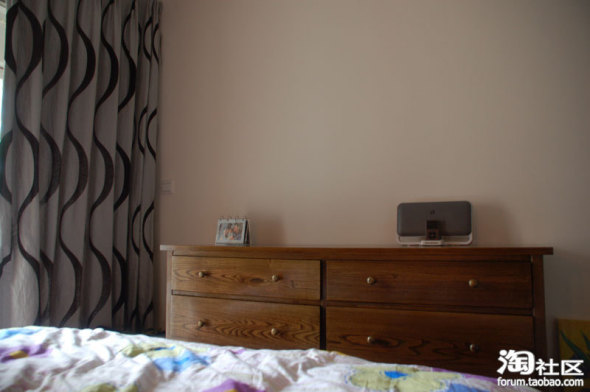 主卧的家具是老榆木实木的,有点老气,但是我们都很喜欢这种实木的感觉。