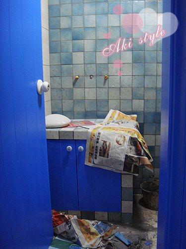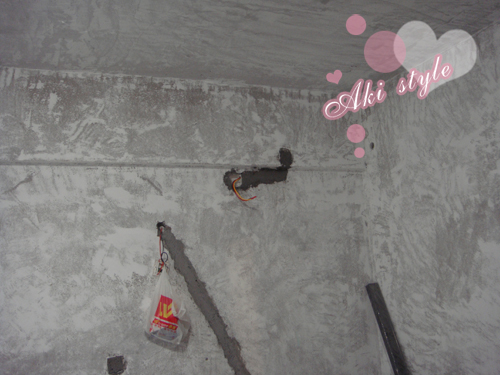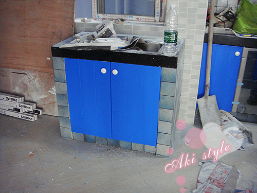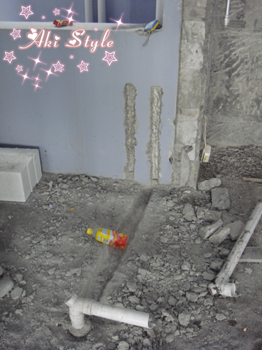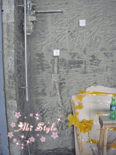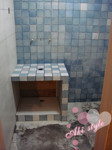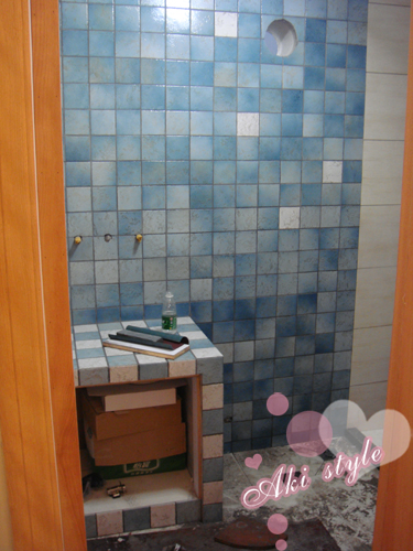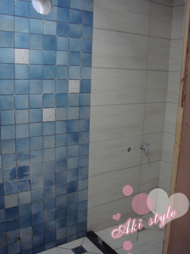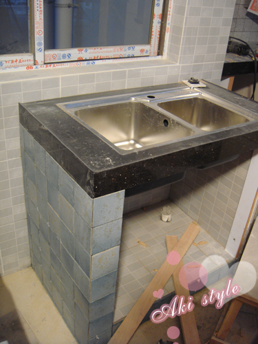 顺便看到了水泥砌的洗手台..本来要全白砖..可是小白砖不够了..