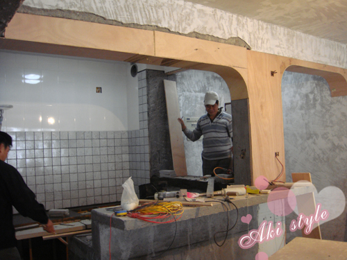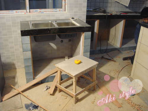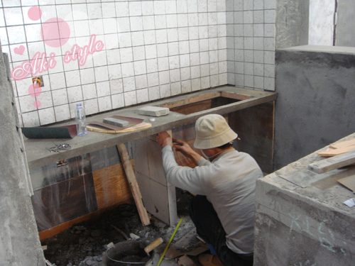 我家可爱的泥水师傅..正在做橱柜..