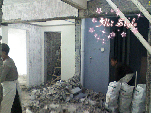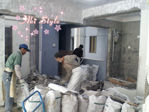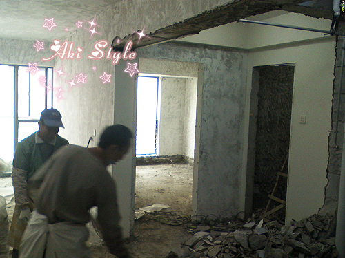 墙..打掉..阳台打掉..全部推掉..全部乱来..