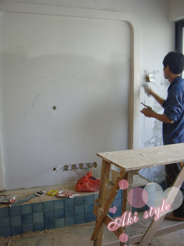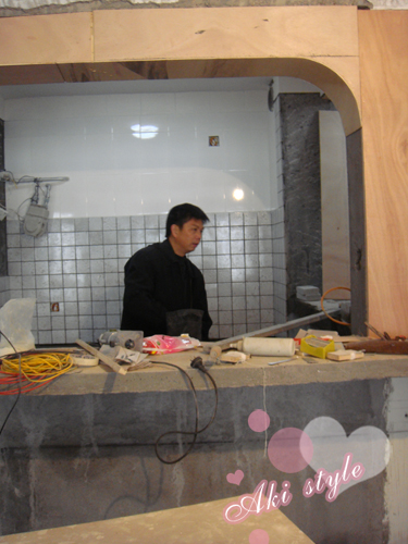 之后就是漫长的贴砖,砌水泥台子之类的..