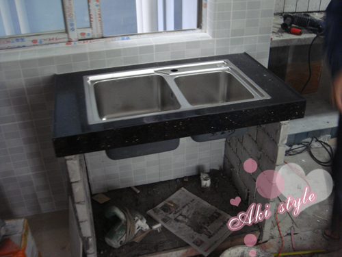 就造就了现在的台子..大理石没怎么拍照..因为现在还很多灰尘,也没装灯..所以..还看不出来效果..