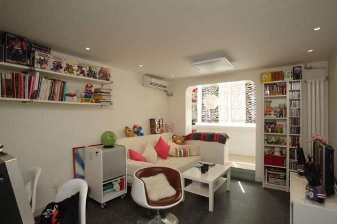 这个独特的案例是为一对年轻的soho人士设计的:男主人是影视制作高手,平时喜欢收藏变形金刚、限量版的可口可乐瓶,以及各种影视海报,还是一个电子乐的爱好者兼DJ;女主人从事动漫设计工作,满墙的娃娃都是她的最爱。