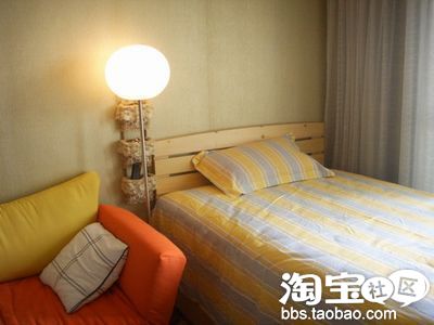 第二方案:现有的床是新买的,主要是靠头的地方与床品不好看,淘一些布品包一下,更换床单